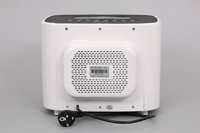 본체 뒷면을 보면 다수의 구멍이 뚫려 있는데, 외부 공기가 유입되는 흡입구이기 때문에 이 부분이 막히지 않도록 유의해야 한다. 뒷면 아래쪽에는 전원 코드가 일체형으로 연결되어 있다.