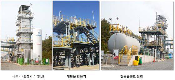 화학연 전기원 박사 연구팀은 메탄과 이산화탄소에 수증기를 섞은 혼합기체를 촉매에 통과시킴으로써 합성가스(일산화탄소와 수소로 이루어진 혼합가스)를 제조하는 리포밍(메탄으로부터 합성가스를 생성하는 반응) 신공정 기술을 개발했다. 또 제조된 합성가스로부터 메탄올을 생산하는 통합 공정도 개발, 온실가스 저감 가능 기술을 확보했다.