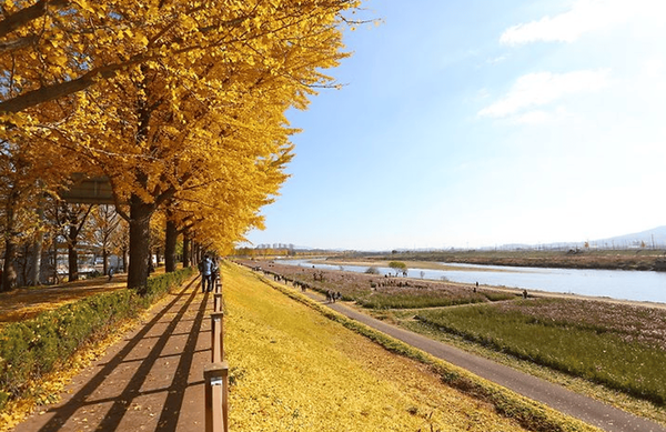 아산 곡교천 은행나무길은 가을을 맞아 은행나무의 황금빛 카펫을 걷고 싶은 이들에게 완벽한 명소인데요. 이곳은 수백 미터에 걸쳐 나열된 은행나무들이 선사하는 화려한 가을 풍경을 감상할 수 있어 많은 분들의 발길이 이어집니다.