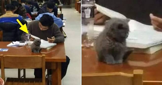 도서관에 예쁜 고양이를 데려온 한 남성이 있는데요