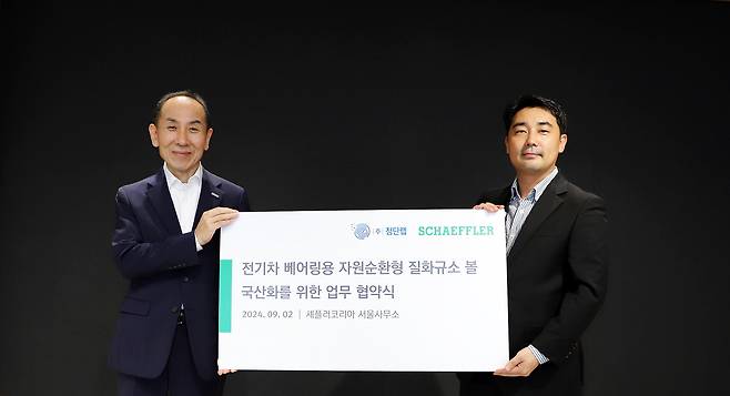셰플러코리아는 2일 셰플러코리아 서울사무소에서 폐실리콘 자원순환 기술을 활용한 첨단소재 질화규소의 국산화를 위해, 고부가가치 첨단 소재 및 부품업체 ‘첨단랩’ 과 업무 협약(MOU)을 체결했다고 3일 밝혔다.