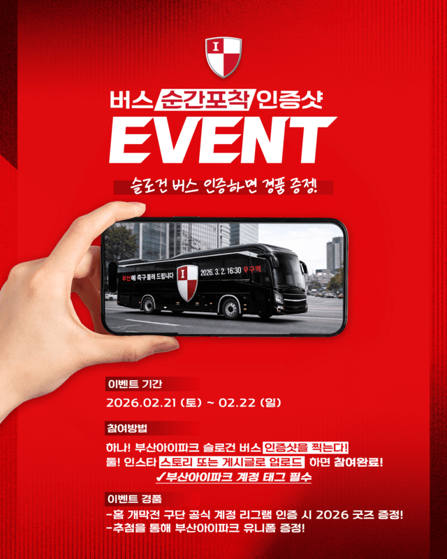 팬들을 위한 참여형 이벤트도 마련됐다. 도심 속 래핑 버스를 촬영해 구단 공식 계정(@busaniparkfc) 태그와 해시태그 #부산우리자리로를 포함해 인스타그램 스토리에 올리면 참여할 수 있다. 개막전 당일 현장에서 스토리 인증 시 공식 굿즈를 수령할 수 있다. 추첨을 통해 2026시즌 홈 유니폼도 증정한다.