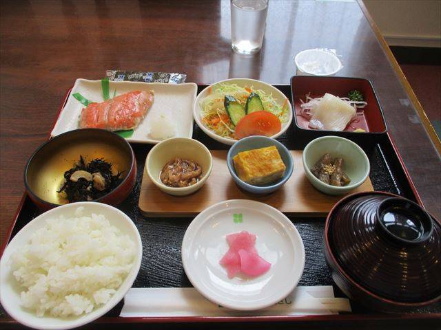 연어구이 + 아보카도 슬라이스 + 나물 반찬