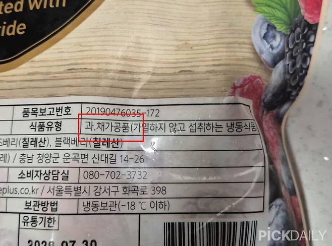 냉동 과일은 크게 과·채가공품과 농산물로 나눌 수 있다. 과·채가공품은 별도의 세척 없이도 먹을 수 있지만, 농산물은 냉동 이외에 아무런 가공을 하지 않은 제품으로 먹기 전 세척이 꼭 필요하다. 같은 냉동 블루베리라도 '과·채가공품'이냐 '농산물'이냐에 따라 세척 여부가 결정된다.