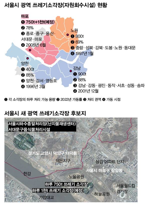 서울시는 마포구 상암동에 1천t 규모의 소각장을 지을 계획이다. 이 소각장 단독 후보지는 이미 서울 쓰레기의 23%가량을 태우는 상암동 광역 소각장(750t 규모) 바로 옆이다. 소각장 부지 바로 옆의 상암동, 1~3㎞ 떨어진 고양시 대덕동 주민들은 2022년 8월 후보지 발표 이후 거세게 반발하고 있다. 대덕동 동쪽으로 서울시 소각장이, 서쪽으로 서울시 광역 하수종말처리장(물재생센터)과 서울시 서대문구 음식물쓰레기처리시설이 있다.