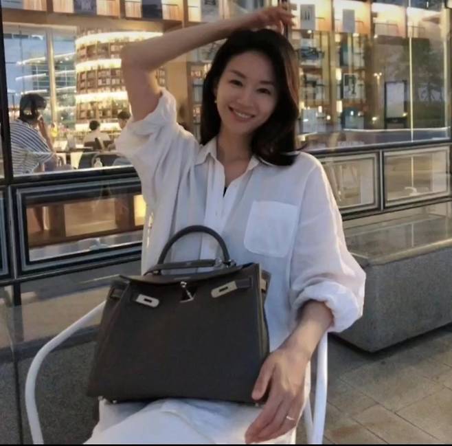 구조적이고 클래식한 명품 토트백으로 룩의 중심을 잡으며 세련미를 더했습니다.
