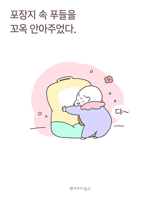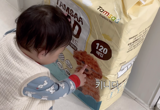 '어? 우리 집 강아지다!' 포장지에 인쇄된 강아지를 본 아기의 귀여운 행동