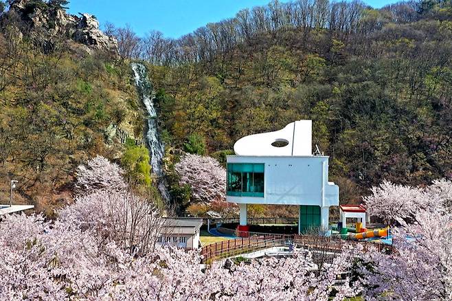 여러 개의 굴곡진 웅덩이를 따라 흘러내리는 모습이 마치 피아노의 건반 같이 생겨 붙여진 이름이 아닐까 싶을 수 있습니다만, 사실은 홍보관의 건물이 피아노처럼 생겨서 그렇게 부르는 것이랍니다. 하하, 조금 김샌 느낌일지도 모르겠네요.