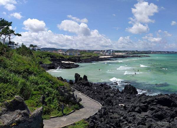 제주도 특유의 현무암들과 기암괴석들을 감상하며 산책하기에도 좋고, 반대쪽으로는 청량한 에메랄드빛 바다가 어우러져 더욱 힐링되는 기분을 느끼실 수 있는데요.
