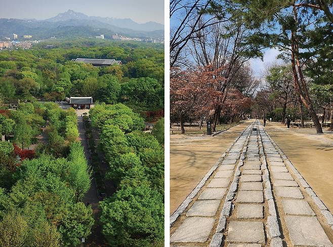 외대문을 지나서 삼로(신로, 어로, 세자로)를 걸어가다 보면 ‘고요’라는 감정과 함께 ‘나는 누구인가’라는 자기 존재 시원의 물음이 솟구쳐 올라온다. 이 매봉 용맥의 구릉 사이 곡(谷 : 산이 겹쳐 내려오는 사이의 평탄한 지형)에는 후원, 창덕궁, 창경궁, 종묘가 자연의 구릉을 경계로 독립적인 영역을 가지고 있고, 이 숲의 흐름은 목멱산(현재의 남산)까지 이어져 있다. 지금은 창덕궁과 종묘를 가르는 율곡로가, 남산과는 세운상가로 인해 이 숲의 길이 끊어졌다. 하지만, 종묘가 종묘일 수 있는 것은 장대한 정전 건축물이 아니라 정령이 깃든 울창한 ‘숲의 종묘’ 때문이지 않을까 생각한다. 우리나라의 종묘가 중국 태묘나 베트남의 세조묘와는 다소 차이가 있는데, 좌종묘 우사직의 원칙을 지키면서 자연환경과 고대로부터의 토템 신앙, 그리고 효에 대한 마음이 다르기 때문이다.