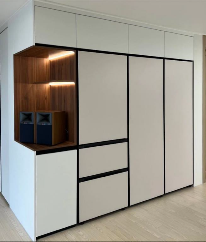 수납장 맞춤 제작에는 가전 수납형, 원도어형 등 다양한 유형이 있는데요.