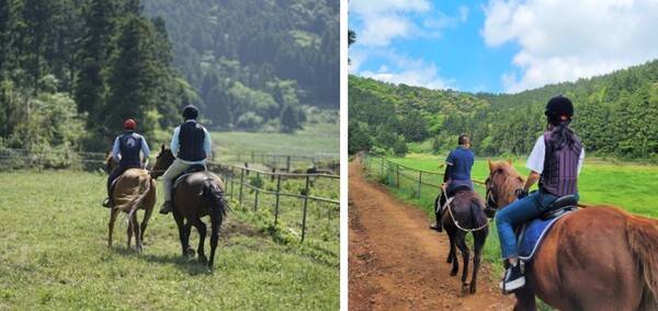 힐링승마의 메카라고 일컬어지는 오름승마랜드에서는 말을 타고 부대오름 주위를 돌아볼 수 있는데요. 말 두 마리당 관리자 한 명이 붙어 에스코트를 해주기 때문에 초보자도 승마체험이 가능합니다.