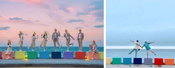 2일차는 동서쪽의 가운데로 이동해, 인생샷을 남기기 좋은 도두 무지개 해안도로에서 시작할 건데요. 이곳은 용담레포츠공원부터 도두봉 근처까지 이어지는 곳으로, 무지개색으로 칠해진 방호벽을 배경으로 비행기와 함께 사진 찍기에 좋은 곳입니다.