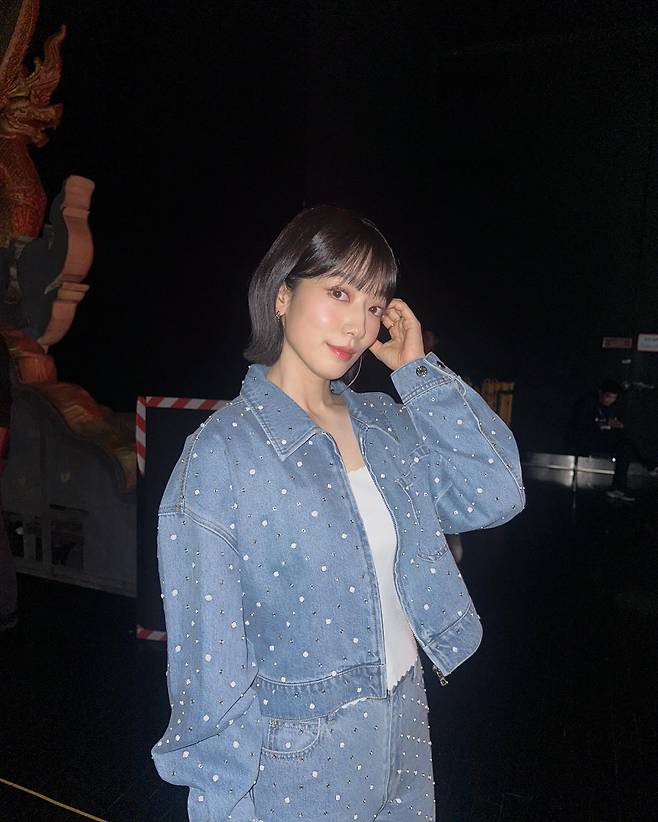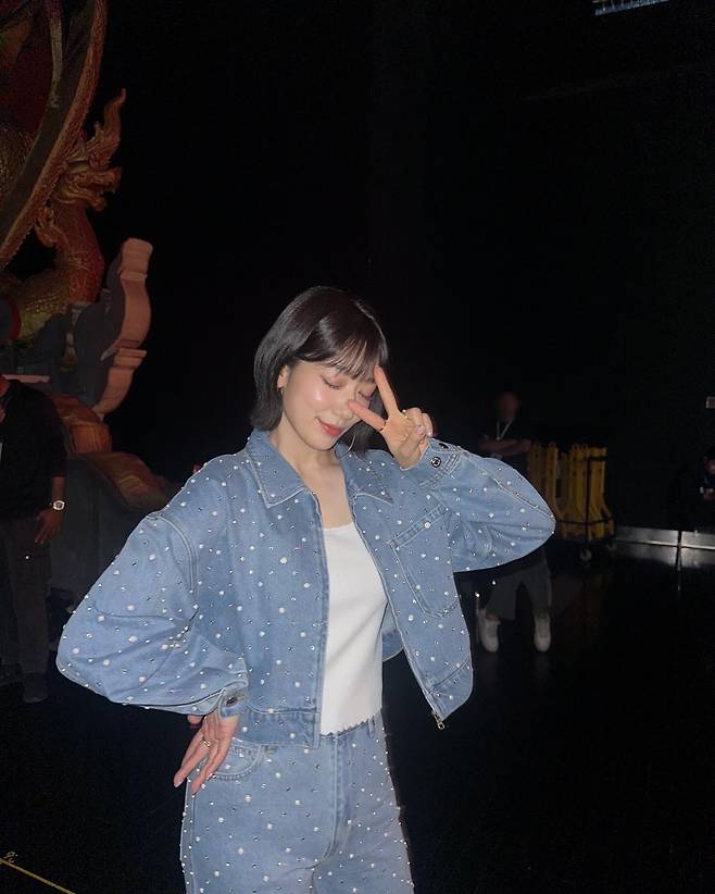 베이스는 캐주얼하지만, 작은 진주 디테일들이 룩 전체에 고급스러운 반짝임을 만들어줘서 무대 밖에서도 무대 위 같은 존재감이 느껴졌어요.