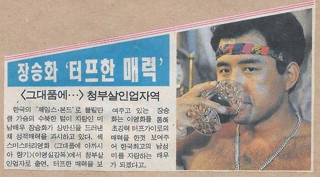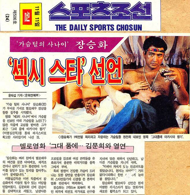 상대역은 절친한 제주도 출신 김부선. 두 사람은 첫 연기임에도 환상적인 호흡을 보여주며 영화는 흥행에 성공했고, 장승화는 곧바로 섹시 스타 반열에 오르게 된다.