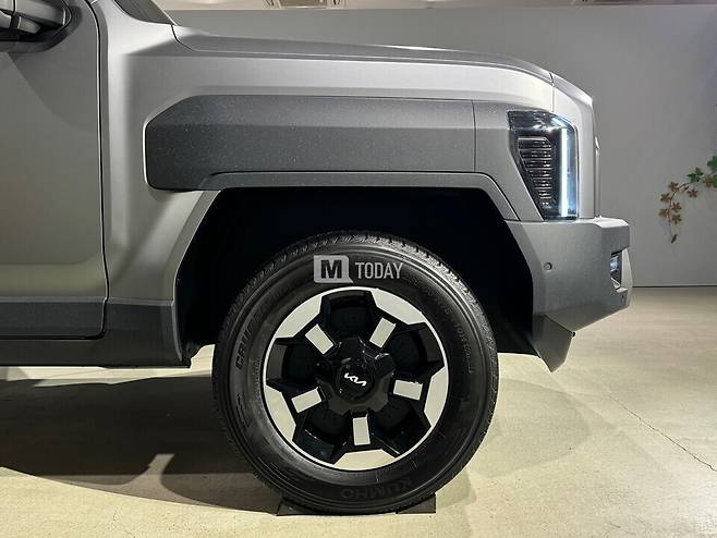 타스만의 외경이 800mm된다. 생각보다 큰 사이즈다. 현재 장착된 17인치 휠이 아닌 20인치 휠을 장착하면 주행 중 바운스가 있을 때 간섭이 있을 수 있어 지금 자체로 보면 커 보이지만, 타스만의 성능에 맞게 패키지를 확보했다. 하지만, 픽업트럭을 좋아하는 고객들은 자체적으로 인치업이나 서스펜션 변경 등을 많이 하는데 구조변경 검사 관련 내용도 더 잘 알고 있다. 인치업 관련 측면에서는 유리한 부분도 있겠지만, 전혀 의도하진 않았다.