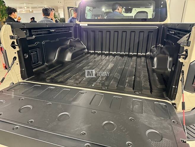적재함 고리 같은 경우 어떤 포인트로 적용해야 하는지 알 방법이 많지 않아서, 경쟁차들을 면밀히 벤치마킹을 많이 했다. 회의도 다른 차보다 2배 이상 했을 정도로 신경 썼다. 픽업트럭의 경우 전방부(탑승공간)까지는 SUV와 비슷하다고 볼 수 있는데, 베드는 완전히 신규 개발하는 것이다 보다 신경을 많이 썼다.