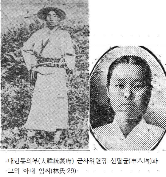 1924년 11월 4일자 조선일보에는 '천붕(天崩)의 흉보(凶報)로 자살한 부인'이란 제목의 기사가 하나 실린다. '천붕'이란 남편의 죽음을 뜻한다. 대한통의부(大韓統義府) 군사위원장 신팔균(申八均) 가족에 대한 기사다.