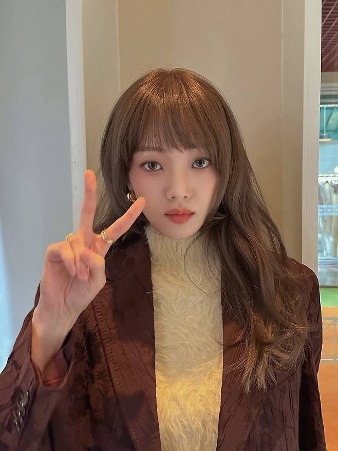 재킷 표면에 은은하게 새겨진 문양은 이성경 특유의 세련된 이미지와 어우러져 전체적인 스타일링에 깊이감 있는 풍성함을 더해주고 있네요.