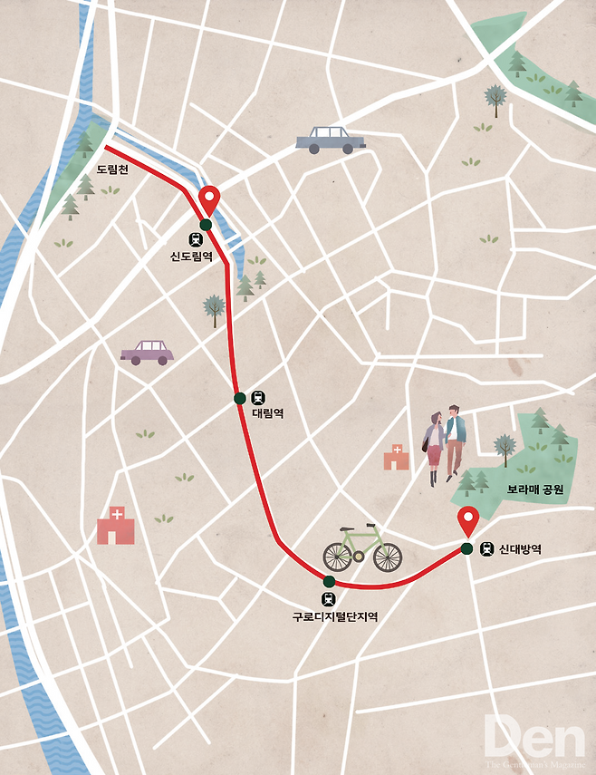 신도림역에서 신대방역까지는 도림천 위에 교각을 세우고 철로를 건설해 5km가량 비를 맞지 않으며 달릴 수 있다. 다만 폭우가 내리면 물이 급속도로 불어날 수 있으니 주의할 것.