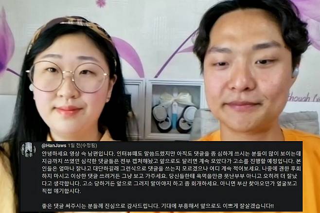 이후 남편은 한 번 더 댓글을 통해 "안녕하세요 영상 속 남편입니다. 인터뷰 때도 말씀드렸지만 아직도 댓글을 좀 심하게 쓰시는 분들이 많이 보이는데 지금까지 쓰였던 심각한 댓글들을 전부 캡처해 놨고 앞으로도 달리면 계속 모았다가 고소를 진행할 예정입니다"라고 강경 대응을 예고했습니다.