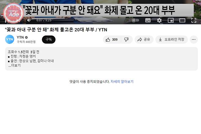 이에 현재 YTN 뉴스는 해당 인터뷰 댓글 창을 막아놓은 상태입니다.