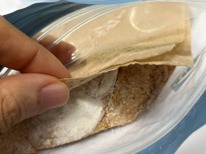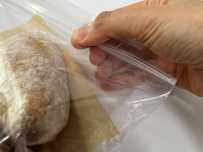 빵을 냉동하여 얼릴 때는 지퍼백에 보관하면 편한데요. 빵을 겹겹이 겹쳐서 지퍼백에 그냥 넣으면 나중에 빵끼리 붙어서 떼어내기가 어렵습니다.