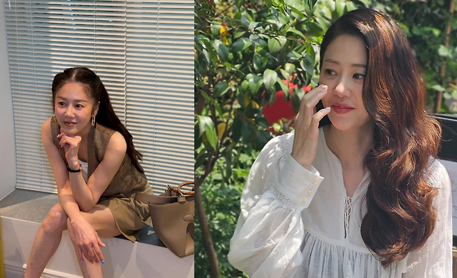 고현정은 슬리브리스 니트와 쇼츠를 매치해 모던하면서도 편안한 캐주얼룩을 연출하고 있다. 뉴트럴 톤의 컬러 조합과 미니멀한 디자인이 세련된 분위기를 자아내며, 볼드한 이어링과 브라운 컬러의 토트백이 포인트 역할을 한다. 자연스럽게 넘긴 긴 머리가 자유로운 무드를 더한다.