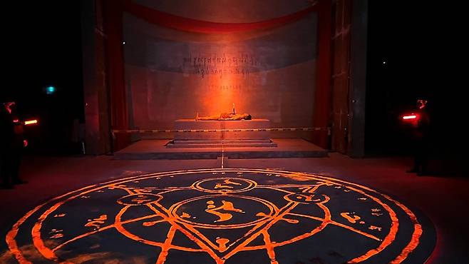 피의 마법진 구역. 거대한 마법진과 함께 방금 인신공양을 끝낸 듯한 제단이 있었습니다.