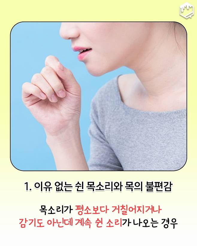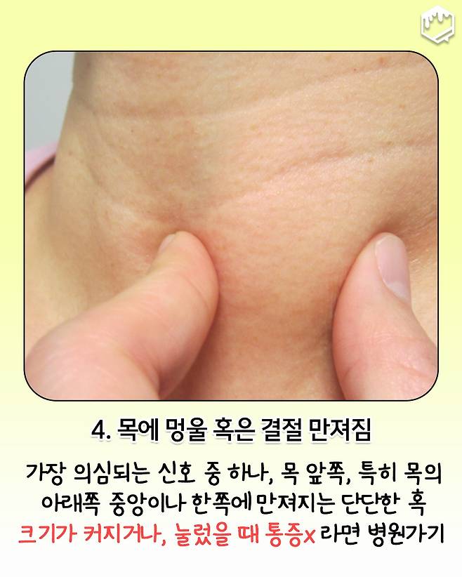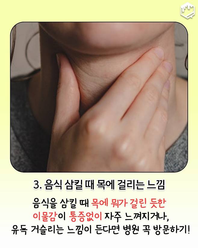 갑상선암 초기증상은?<br><br>많은 사람들이 갑상선암은 통증도 없고 증상도 없는 암이라고 말합니다. 어느 정도는 사실이지만, 주의 깊게 보면 놓치지 않을 수 있는 신호들이 존재합니다.<br>목 앞쪽에 만져지는 단단한 혹<br>음식 삼킬 때 이물감 또는 통증<br>목소리 변화 (쉰 목소리)<br>호흡 곤란 또는 기침<br>림프절 비대 (목 옆 또는 아래)<br><br>👉 위와 같은 증상이 지속된다면, 절대 무시하지 말고 병원에서 초음파 검사를 받아보는 것이 가장 정확한 진단 방법입니다.