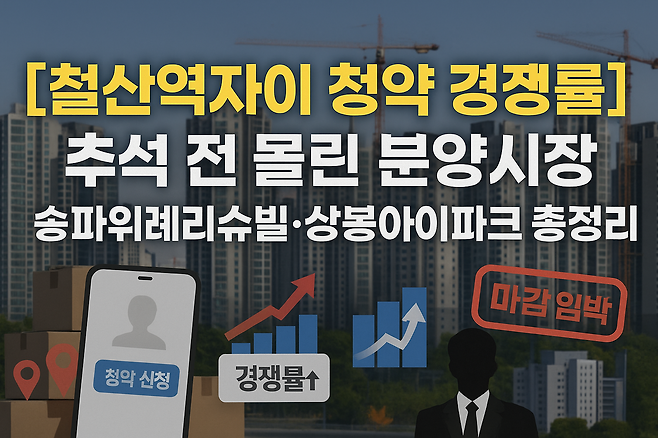 2025년 가을 청약시장은 추석 전후로 수도권과 인기 단지를 중심으로 뜨겁게 달아오르고 있습니다. 철산역자이, 송파위례리슈빌 등은 높은 분양가에도 불구하고 수요가 폭발했으며, 청약을 준비하는 실수요자와 투자자라면 자금계획과 조건을 꼼꼼히 확인하셔야 합니다.
