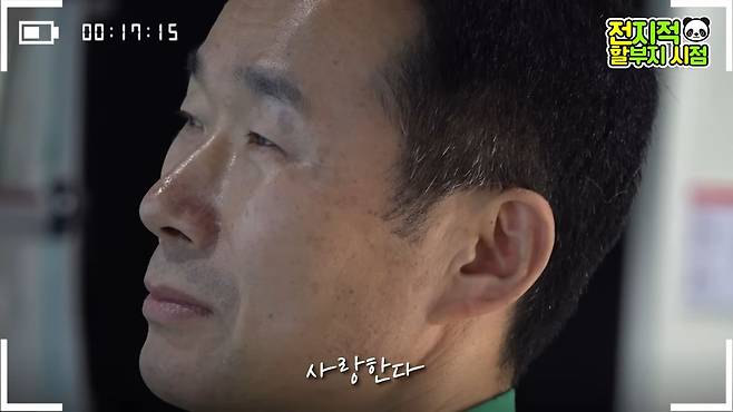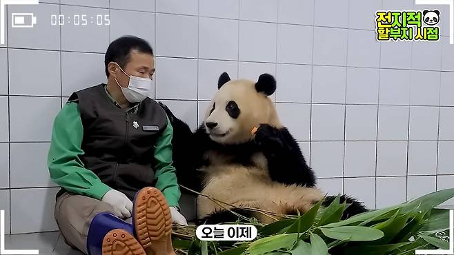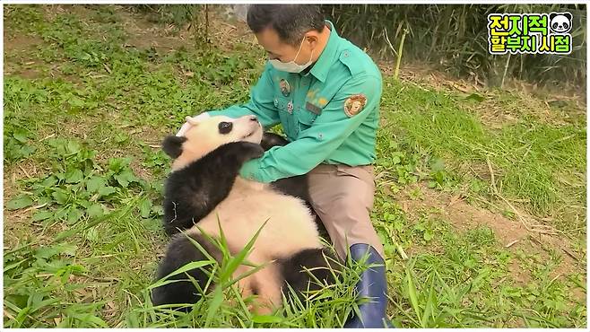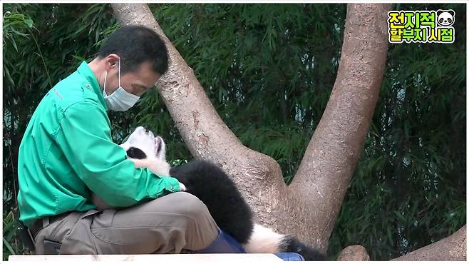 아무리 귀여워도 판다는 맹수. 사육사들의 안전을 위해서라도 판다가 어느 정도 자라면 최소한의 안전 장치 없이 가까이 다가가는 건 삼가야 합니다. 이날은 할부지와 푸바오가 가까이에 있을 수 있는 마지막 날이었습니다. 할부지는 푸바오 옆에 앉아 복잡한 마음을 드러냈습니다. 그러자 푸바오는 "할부지나 잘 하셔" 라는 듯 할부지 어깨에 앞발을 착 올렸습니다. 영상 후반부에는 음악과 함께 그동안 할부지와 푸바오가 함께했던 소중한 순간들이 천천히 재생돼 감동을 전했습니다.
