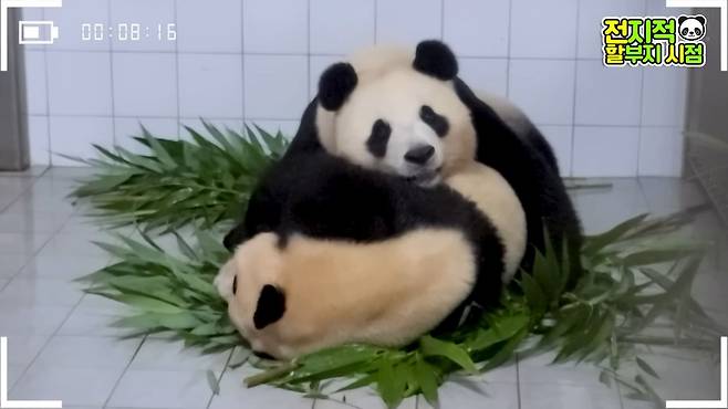 위대한 엄마 판다 아이바오도 아빠 앞에서는 그저 작고 귀여운 아기였습니다.