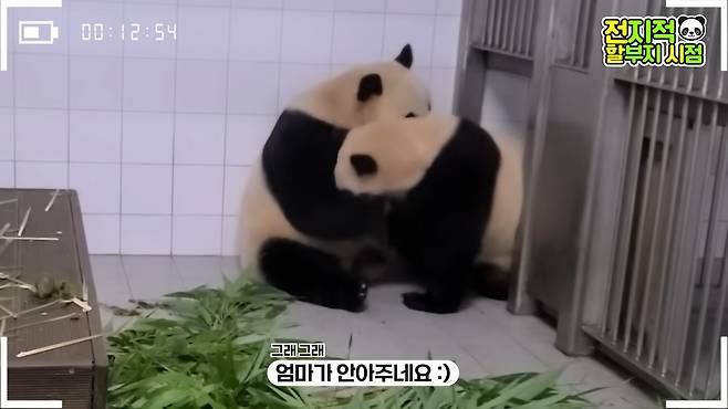 아이바오가 푸바오를 안아주던 이 장면은 지금까지도 바오 팬들 사이에서 가장 감동적인 장면으로 회자되고 있습니다.