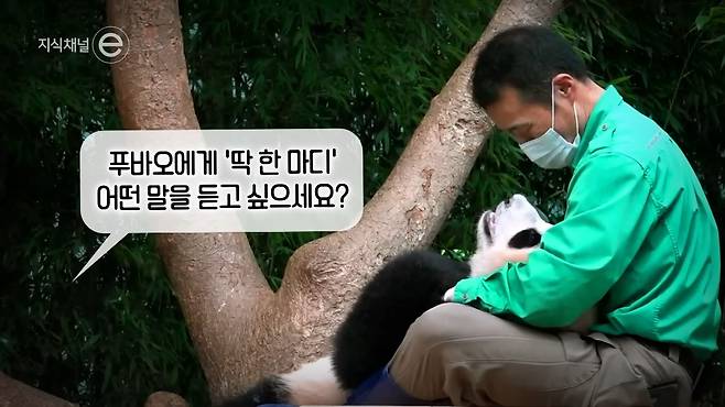 푸바오의 중국행이 1년도 채 남지 않은 시점, 지식채널e는 푸바오가 왜 중국으로 떠나야 하는지를 설명했습니다. 영상 속 강바오 할부지는 푸바오에게 고향을 느낄 수 있게 하려고 유채꽃을 심었고, 푸바오는 매년 할부지의 사랑이 담긴 유채꽃을 가지고 놀았습니다. "푸바오에게 딱 한 마디를 듣고 싶다면?"이라는 질문에 할부지는 "할부지를 만난 건 행운이야"라는 말을 듣고 싶다고 합니다. 영상은 강바오 할부지와 아기 푸바오가 우체통 나무를 사이에 두고 행복하게 노는 장면으로 끝나, 많은 이들에게 깊은 감동을 안겼습니다.