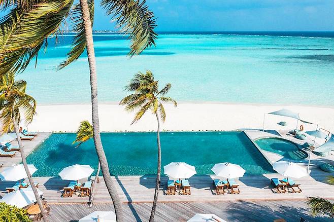 덕분에 이용객들은 풀 라운지나 카바나에서 칵테일을 마시며 아름답게 물드는 몰디브의 석양을 감상할 수 있습니다.