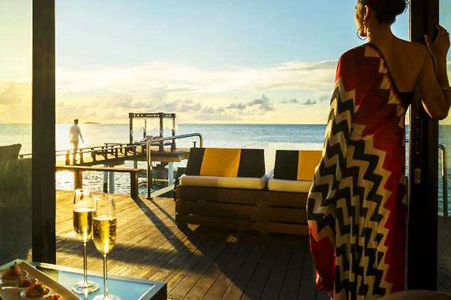 덕분에 이용객들은 풀 라운지나 카바나에서 칵테일을 마시며 아름답게 물드는 몰디브의 석양을 감상할 수 있습니다.