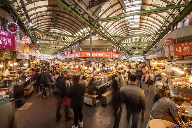 110년 전통의 광장시장은 한국 최초의 상설시장으로, 맛있는 길거리 음식과 다채로운 물건들이 가득한 공간이다. 무엇보다 비가 오나 해가 쨍쨍하나, 아케이드가 설치되어 있어 언제든 편하게 둘러볼 수 있다.