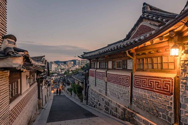 곳곳에 마련된 북촌 8경은 서울 도심과 전통 가옥이 어우러진 멋진 풍경을 보여준다. 그중에서도 북촌 6경에서 바라보는 도시 전경은 그림 엽서 같은 장면을 연출한다.