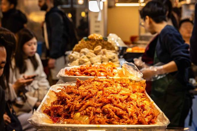 김밥, 육회, 빈대떡 같은 대표 인기 메뉴부터 누드김밥, 매운탕에 이르기까지 시장 안 먹거리 종류가 풍부하다. 최근에는 트렌디한 와인바나 그로서리 마켓 등도 생기며, 옛 정취와 현대 문화가 절묘하게 어우러져 있다.