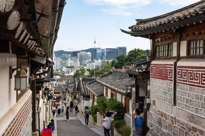 곳곳에 마련된 북촌 8경은 서울 도심과 전통 가옥이 어우러진 멋진 풍경을 보여준다. 그중에서도 북촌 6경에서 바라보는 도시 전경은 그림 엽서 같은 장면을 연출한다.