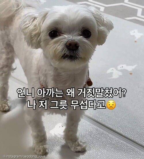 서동이는 평소에도 감정 표현이 뚜렷한 편이라고 한다. 그릇이 마음에 안 들면 밥을 먹어도 꼭 한 마디 표정으로 남기는, 그런 성격. 이번 사건에서도 역시나 뚜렷하게 드러난 감정 표출! 서동이는 보호자가 진짜 사료를 섞어주지 않았다는 걸 눈치 채고, 그 즉시 보호자를 째려보는 ‘썩소’를 지었다. 그 표정에는 ‘속을 줄 알았어?’라는 말이 그대로 담겨 있었다.