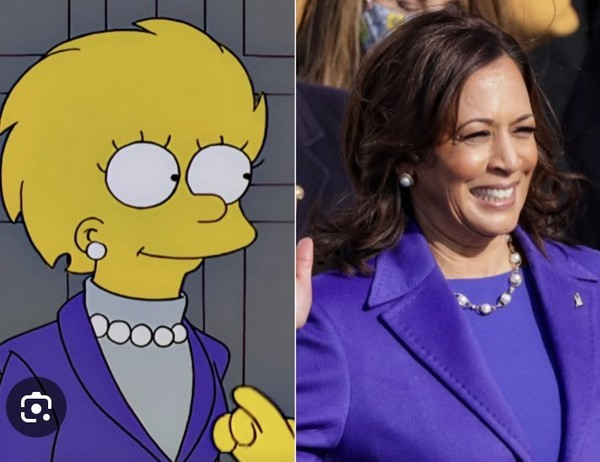 또한, 해리스가 민주당 대선 후보가 되자 팬들은 더 많은 유사점을 발견했습니다. 리사의 보라색 정장과 진주가 해리스 스타일과 매우 흡사했던 것이죠.