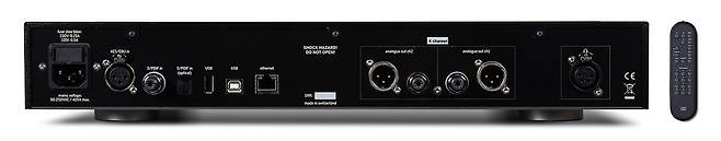 첫 번째로 제품 스타일인데, 사이즈는 슬림하며, 전면 패널에는 헤드폰 단자와 LCD 터치스크린, 엔코더 타입 로터리 노브만으로 깔끔하게 마감되었다. 그리고 엔코더 노브를 통해 전원, 볼륨, 각종 선택 등 다양한 기능을 조작할 수 있도록 간략화했다. 제품 후면은 디지털 입력용으로 AES/EBU용 XLR 단자와 USB B 단자, 코액셜 및 옵티컬 단자로 구성되어 대표적인 디지털 입력 모두를 지원하고 있다. 아날로그 출력은 4채널을 지원하는 XLR 밸런스 출력과 RCA 언밸런스 출력이 있는데, 사용된 단자들은 RCA는 후루텍 제품, XLR은 뉴트릭으로, 신뢰성이 뛰어난 제품을 사용하고 있다. 그리고 헤드폰을 위한 4핀 타입 XLR 단자를 별도로 마련해 두었다.