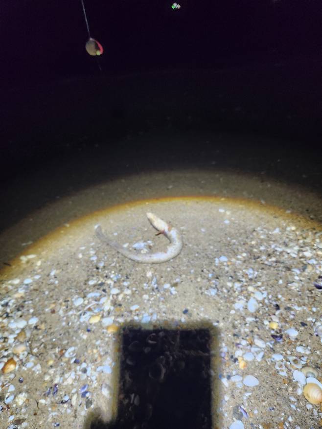 오라는 감성돔들은 오지 않고..장어만 내리 나온다..