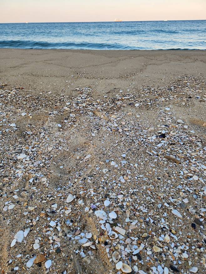 이곳은 물속에 여는 없는데...조개 껍데기들이 해변에 많이 보인다...