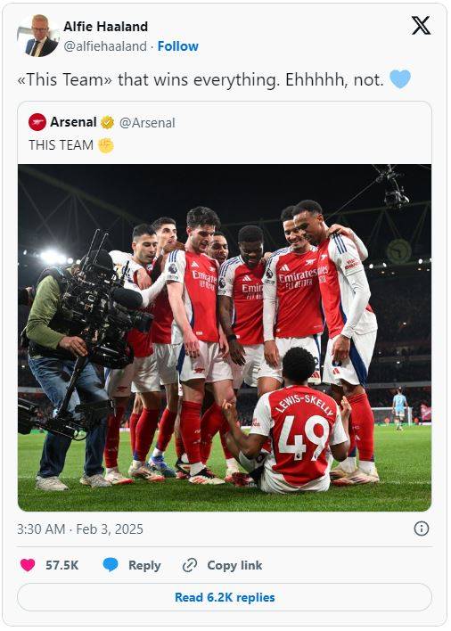 경기 후 아스널이 공식 사회관계망서비스(SNS) 계정이 올린 "이 팀(This Team)"이라는 글에 대해 알피 홀란은 "이 팀이 모든 걸 다 이긴다고? 에, 아닌데"라는 댓글을 남기며 도발적인 글을 올렸다.