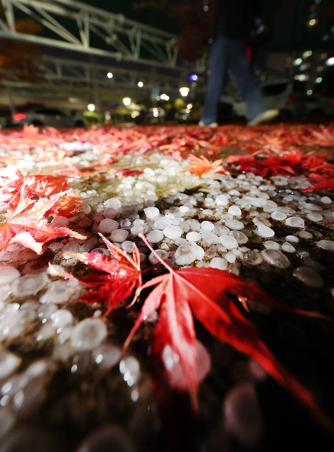 한밤중 부산지역에 우박이 쏟아졌다. 시민들은 놀란 가슴을 쓸어내렸다.