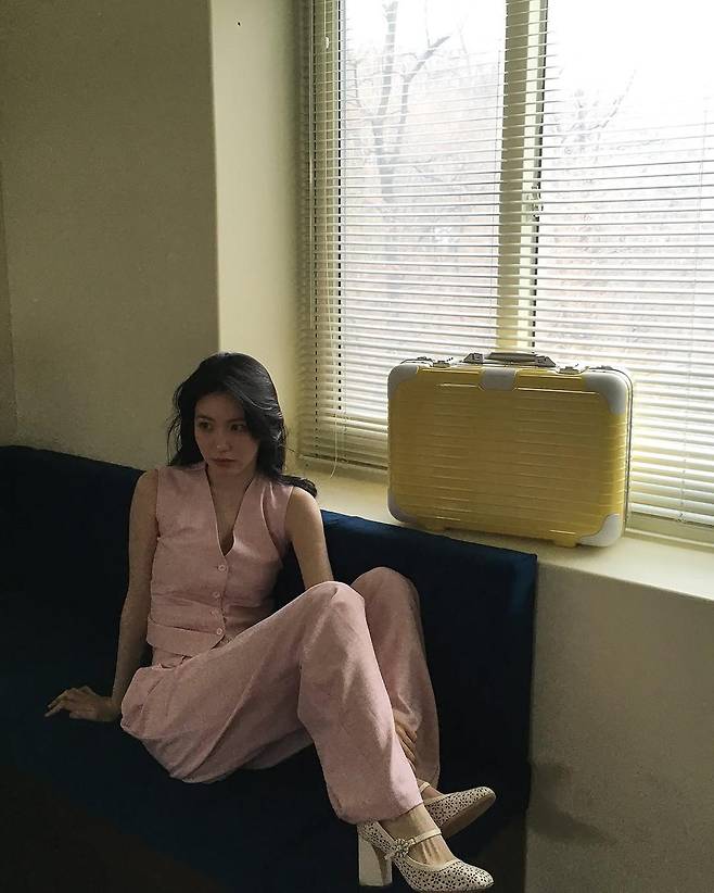 그녀가 손에 든 캐리어는 단순한 여행 가방 이상의 의미를 담고 있다. 광택이 도는 옐로우 캐리어는 이번 룩의 키 포인트다. 튼튼하고 직선적인 디자인은 신예은의 부드럽고 차분한 이미지를 상쇄하며 색다른 밸런스를 만들어낸다. 마치 어디론가 훌쩍 떠나기 직전의 긴장과 설렘이 담긴 장면처럼, 보는 이에게도 당장이라도 짐을 싸고 싶게 만든다.