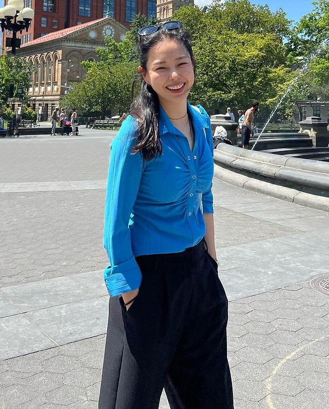 공개된 사진 속 이하늬는 코발트블루 셔츠와 블랙 팬츠를 매치해 스타일리시한 테일러드 섬머룩으로 근황을 전했다.